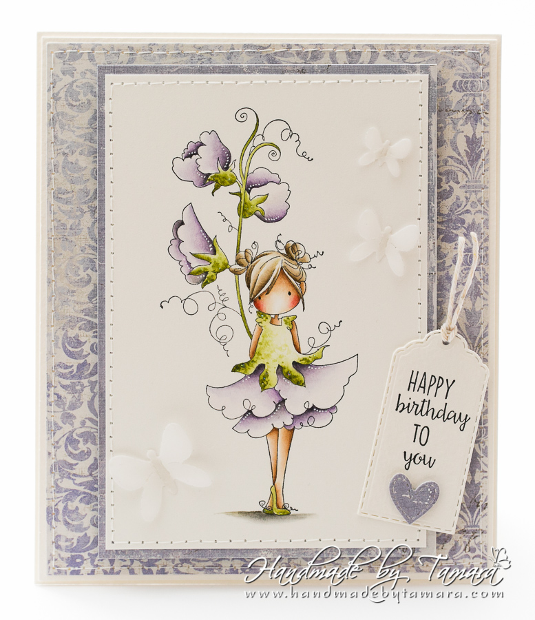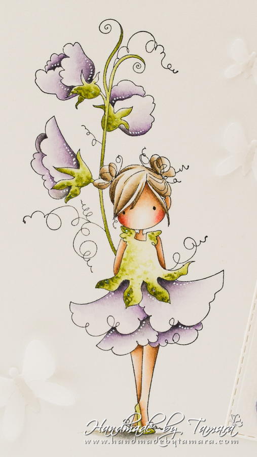 Today I’m sharing with you one of the gorgeous Garden Girls from Stamping Bella called Sweetpea. According to Stamping Bella Sweetpea is April’s Birth flower which means it’s my flower. hehe …