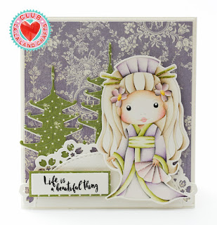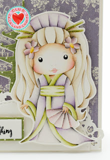 I made two cards with this kit. On the first card I coloured up Beautiful Life Marci. I coloured her using no-lines technique.