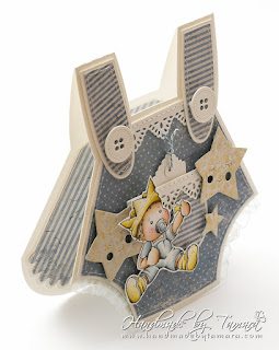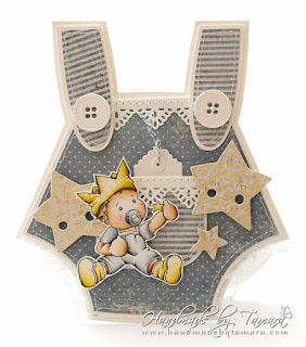 Today I’m sharing with you a Baby boy card made with Magnolia’s Baby Edwin stamp. This stamp was released in 2012 as part od Princes and Princesses collection. Image was coloured using Distress ink pads on Langton 300g HP watercolour paper.