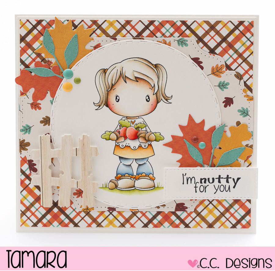 Today I’m sharing with you a card I made for CC Designs September release Newsletter. I used one of the new Swiss Pixies called Giving Lucy.