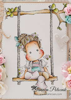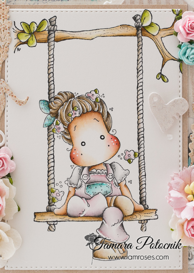 I used Magnolia’s image called Sitting Tilda with Clogs from Country Girl collection, 2017. Image was coloured with Distress ink pads.
