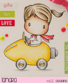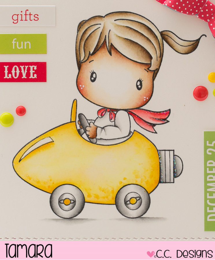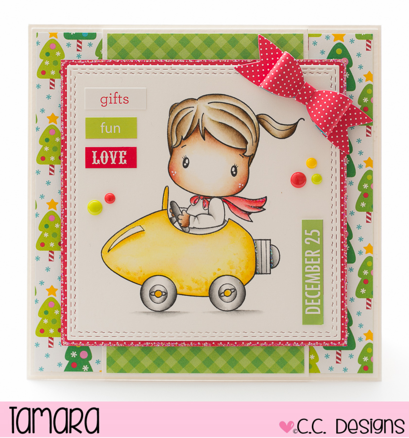 Today I’m sharing with you another Christmas card made for C.C. Designs design team. For this card I coloured Bulb Lucy from the new October’s release. I used rubber stamp to stamp this image, but you can also buy a digi if you want.