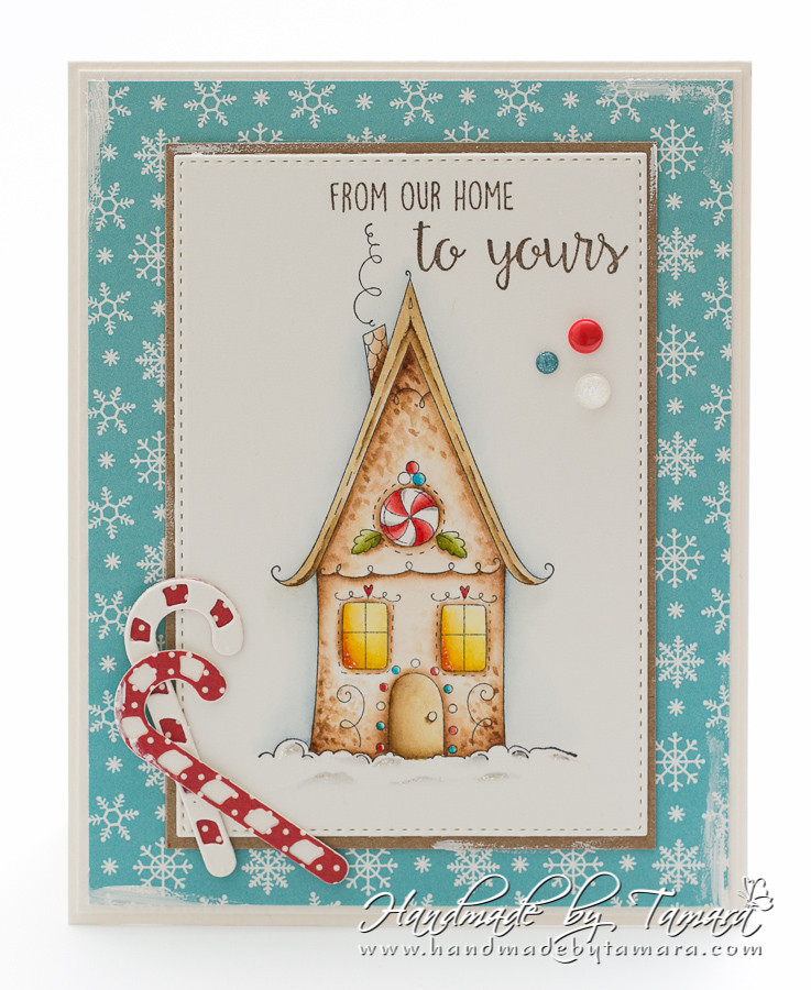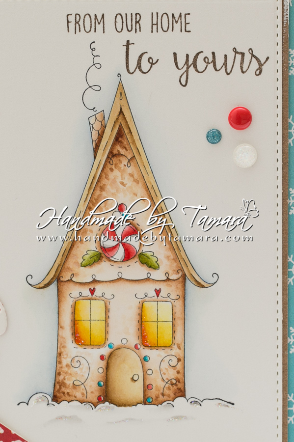 I also used the sentiment “From our Home to yours” from the same set. I didn’t use a lot of die cuts or embellies on this card. Image is so awesome that it really doesn’t need any extras, right?!