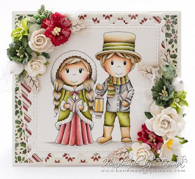 As some of you know I had some of my cards featured on Hochanga TV again. Show went live on Friday 27th at noon. Cards were made with Paper Nest Dolls images and they were all Christmas themed.