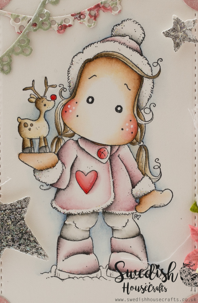 Today I’m sharing with you a Christmas card made with lovely Tilda with Little Rudolf from Magnolia and lots of pretty Magnolia’s dies.