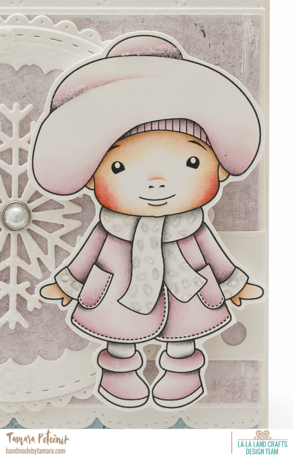 This week’s theme at la-la land crafts challenge blog is FLOWERS. For my dt card I made a Christmas card with Winter Baby Marci. Image was coloured with Distress ink pads as usual.