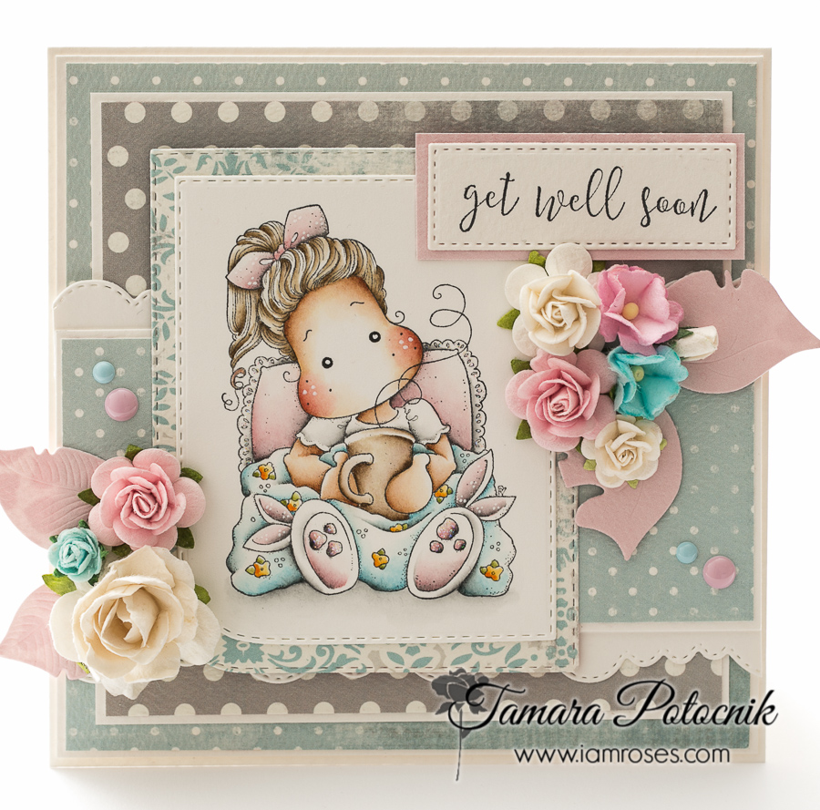 Today I’m sharing with you a card I made for I am roses design team. Winter is coming here in Slovenia and that means time of all kind of virusus, cold, diseases … I decided to create a get well soon card using one of the new Magnolia images and lots of gorgeous I am roses flowers.
