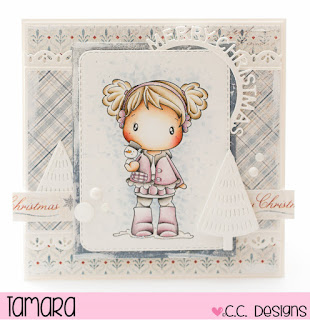 Design papers used on this card are from Maja Design – Joyous Winterdays. I added some white crackle paint to the edges and a few glittery enamel dots.