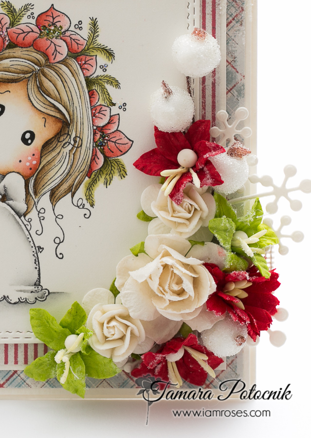 For November’s Challenge I created a Christmas card featuring Sparkle Poinsettia Tilda from Magnolia’s Waiting for Christmas collection.
