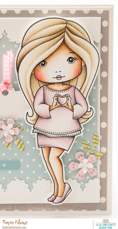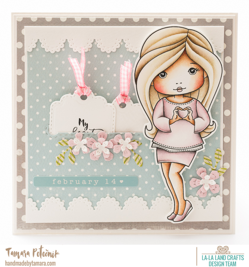 For my dt project I made a Valentine’s Day card. I coloured the new Heart Hands Molli. I just loveeeee her hair. So so pretty!!