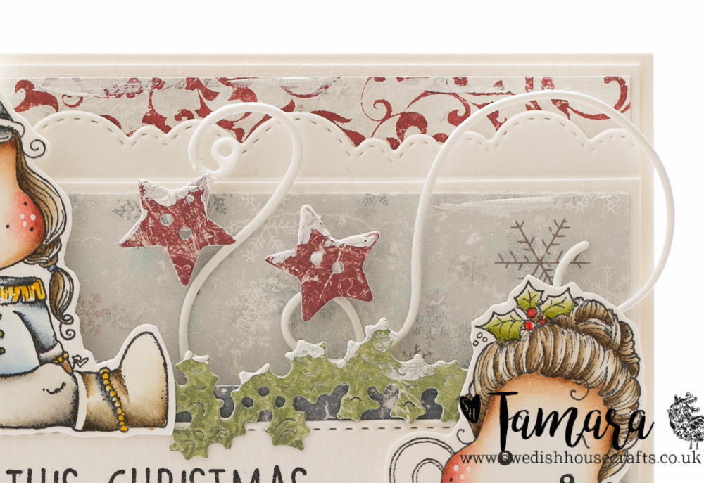 Today I’m sharing with you a card made for Swwdish House Crafts Advent Calendar Day 3. I made a Christmas card with two of the brand new images from magnolia called Toy Soldier Tilda & Christmas Tilda.