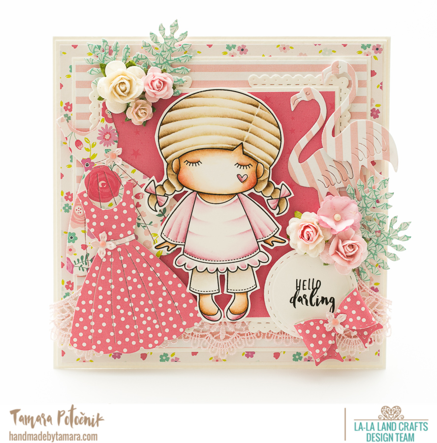 This week’s challenge theme at la-la land crafts blog is FLOWERS!!! For this card I coloured Paper Doll Marci – Awesome. Image was coloured using Distress ink pads.