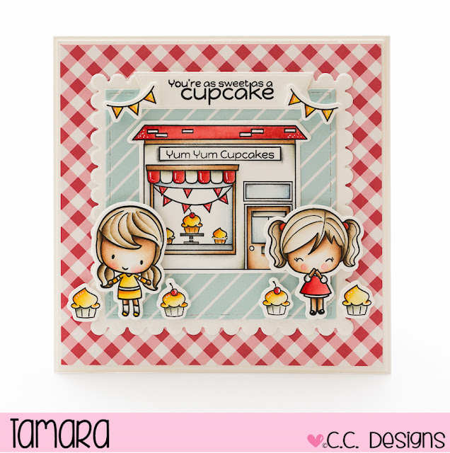 For my new release card I used images from Yum Yum cupcakes collection. All images were coloured using Distress ink pads and then cut out with matching Outline dies.