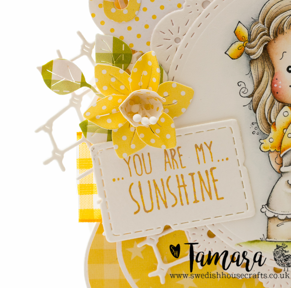 Sentiment “… you are my Sunshine” is also new and available HERE (Sunbeam – Sunshine Kit with Butterflies). I cut out the sentiment using Denim-Jeans tag die.