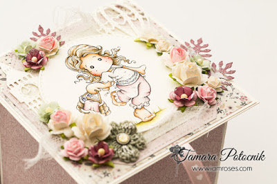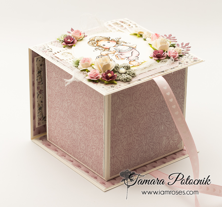 Today I’m sharing with you a gift box I made for I am roses design team. Box was made completely from scratch. I cut the base and all the layers myself and then decorated them with pretty flowers and lots of design papers.