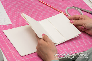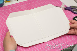 Add adhesive to the piece we just adhered and carefuly line up the album part with the edges of the base. When you have it in perfect position carefully close the album part so that it adhers to the base.
