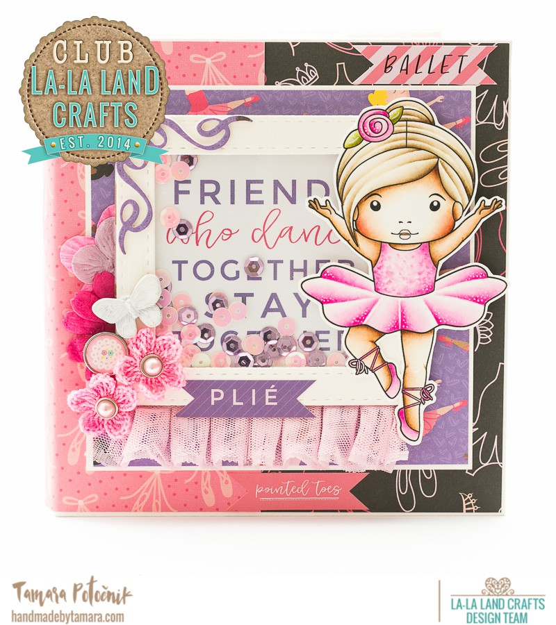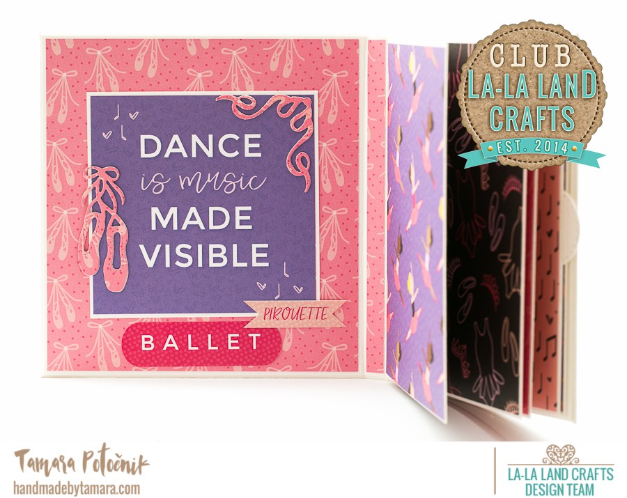 As some of you may remember I made a mini Ballerina album with the latest club kit. Today I’ll show you how to make that album. I only used the latest club kit dies and stamps to decorate it, but you can use different lala land items to decorate it.