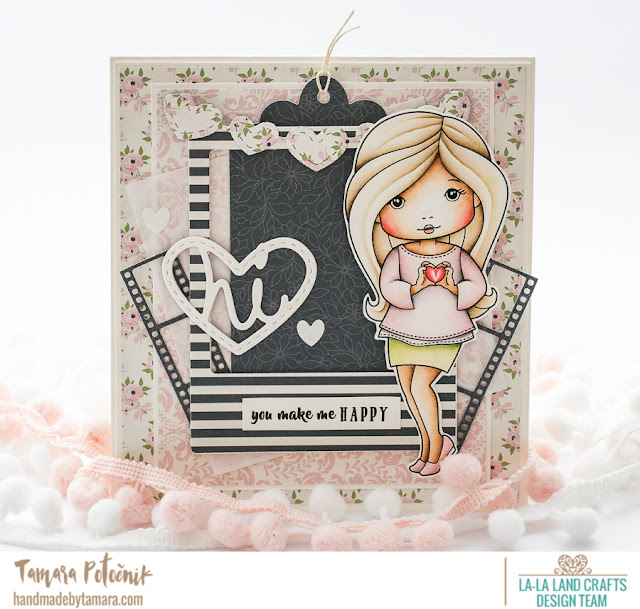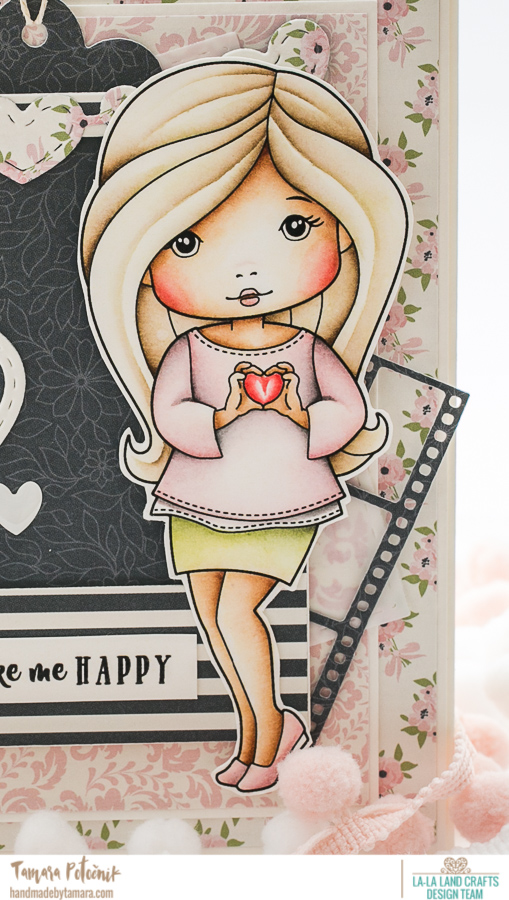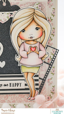 This week’s theme on la-la land crafts challenge blog is THANK YOU! For this project I coloured Heart Hands Molli and added lots of photo elements die cuts.