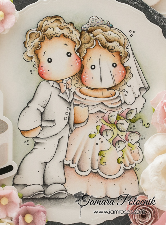 Image used is from Magnolia – Vintage wedding couple. Image was coloured using Distress ink pads on Langton 300g HP watercolour paper.