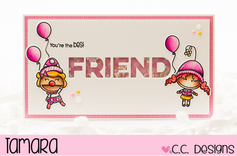 On this card I used Clowns set. I made a Friend shaker card in my fav pink colours. hehe …