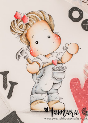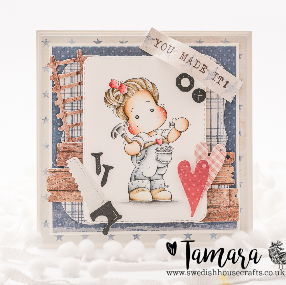 Today I’m sharing with you a card made with one of the cutest handy girls called Hammer Tilda. Image was coloured using Distress Ink pads on Langton 300g HP watercolour paper.