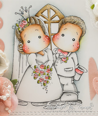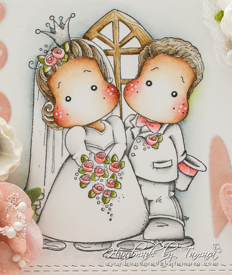 Today I’m sharing with you a Wedding card I made for our neighbour’s Wedding. I used Magnolia’s image called Mrs and Mr Magnolia from You are Invited collection, 2018.