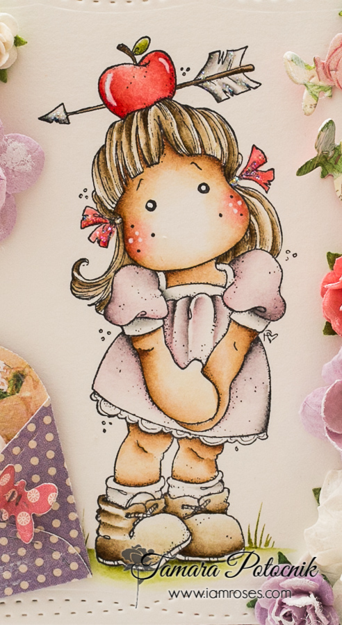 For this month’s challenge I created a card using a Magnolia image called Tilda with arrow. This is an old image from 2012.