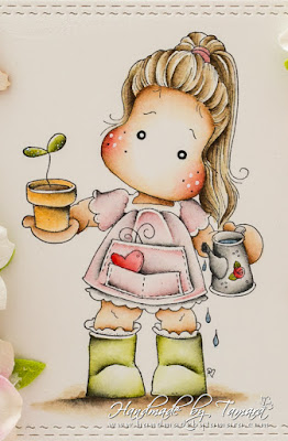 Today I’m sharing with you a card I made quite some time ago for a 60th Birthday. Lady who got the card used to be a gardner, so this Tilda was the perfect choice for her card.