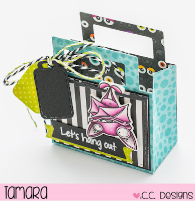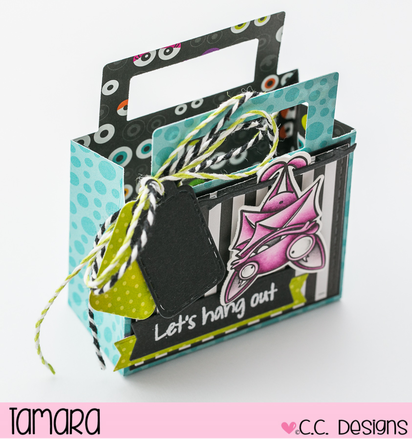 Today I have a special project for you. It’s a small gift bag made with the new Treat Bag Die from C. C. Designs. I decorated the bag using New Bat and Spider clear stamp set.