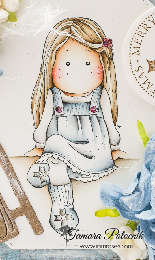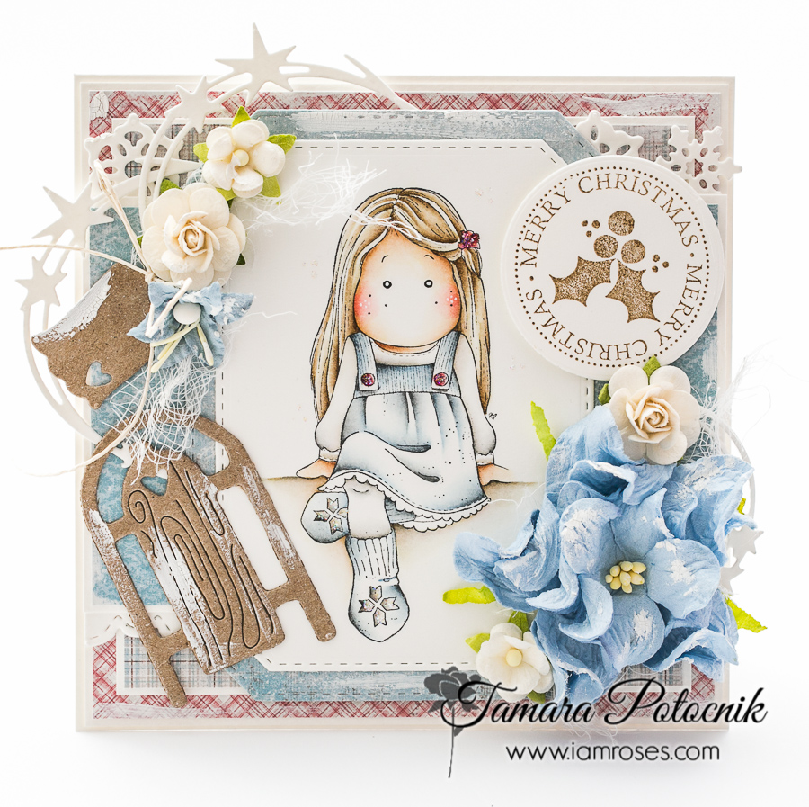 For this month’s challenge I made a Christmas card featuring an old Magnolia image. Image was coloured using Distress ink pads on Langton 300g HP watercolour paper. Design papers are from Maja Design.