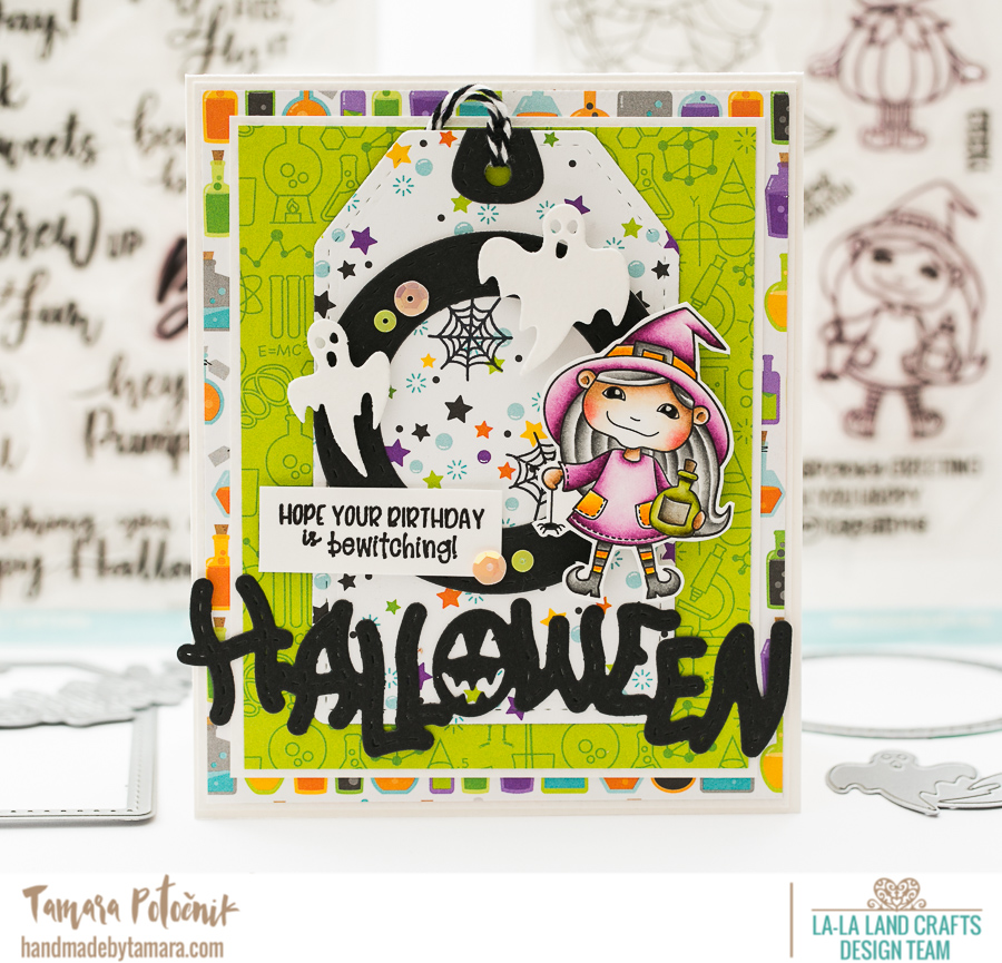 On my second new release card I used one of the witches from Happy Boo to you clear stamp set.