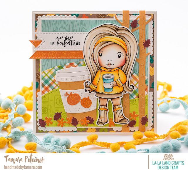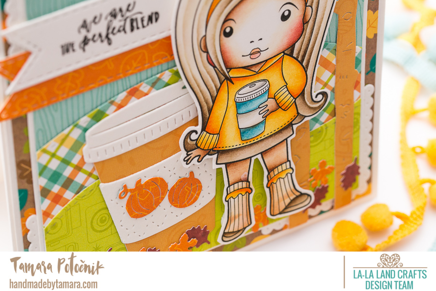 This week’s theme at la-la land crafts is FALL LEAVES! I created a fun Pumpkin Spice latte card. hehe …
