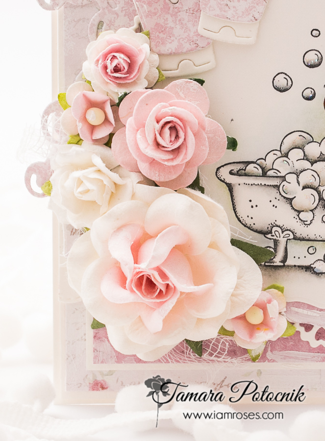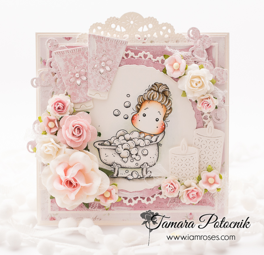 Beautiful soft color card you made, make me so relax and want to join Tilda on bath tub too… :}