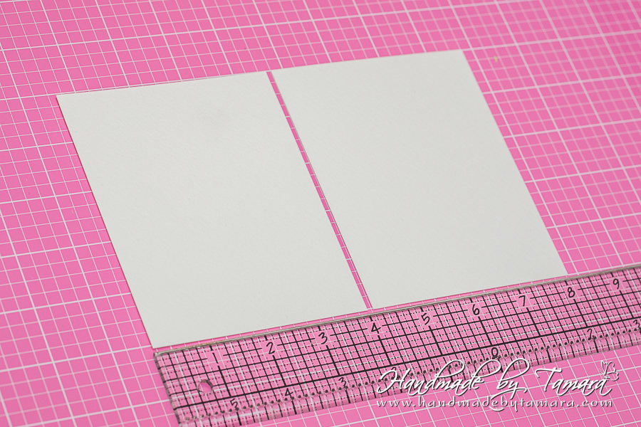 Cut two pieces of heavy white cardstock (300g) measuring 4″ x 5″.