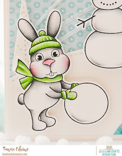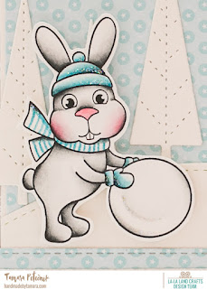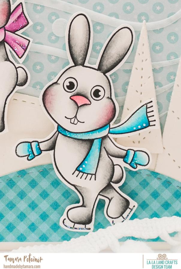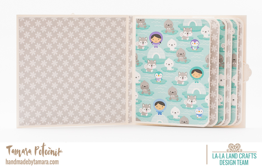 I made two projects with this kit. The first one is a mini waterfall abum. I coloured Snow Day Marci and one of the bunnies from Snow Amazing set.