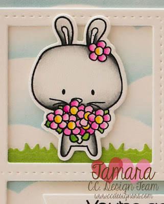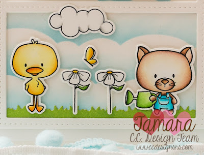 Tamara here with you sharing my latest C.C. Designs Spring themed card. For this card I coloured most of the images from April & May clear stamp set. All images were cut out with matching April & May outline dies.