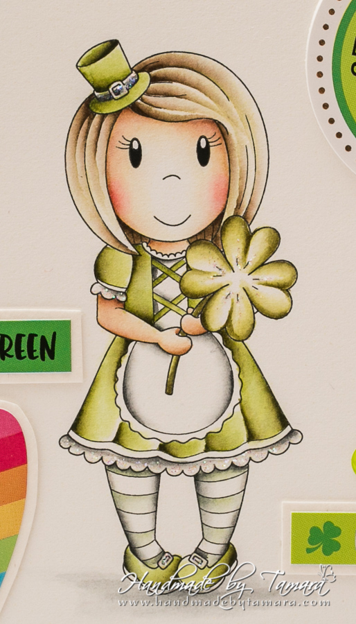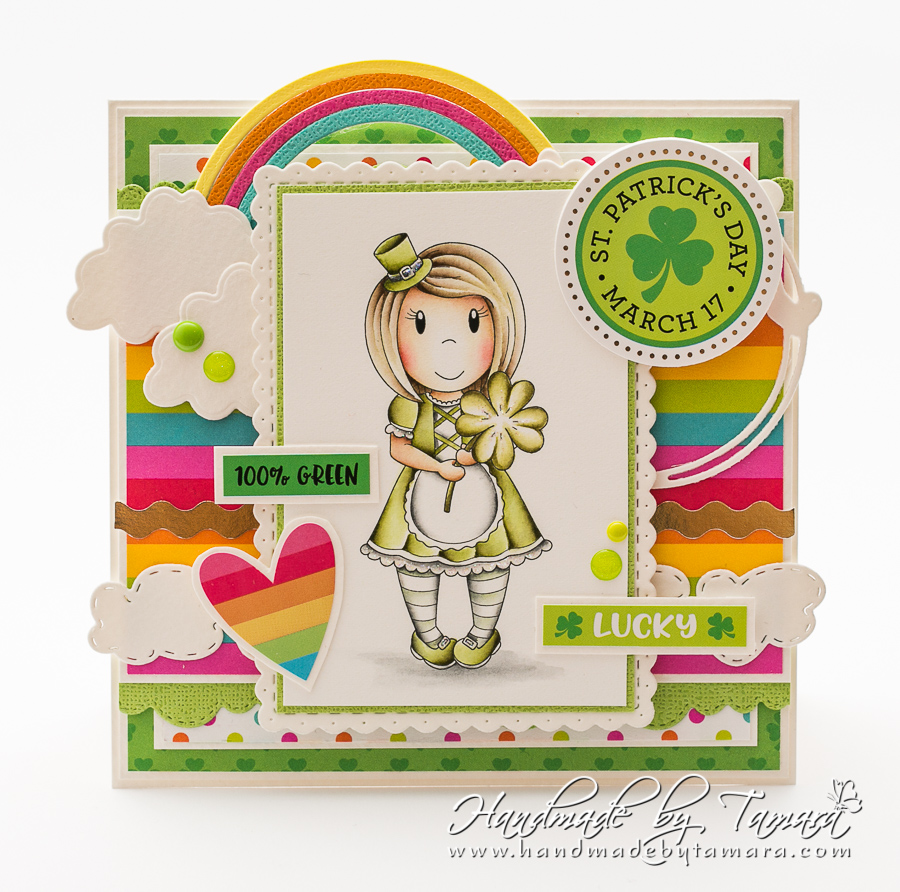 Today I’m sharing with you my card for Paper Nest Dolls. I coloured Lucky Lulu, she’s super new and super awesome.