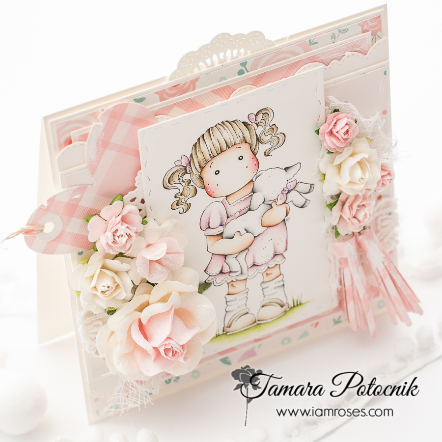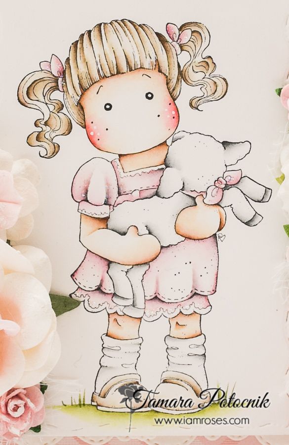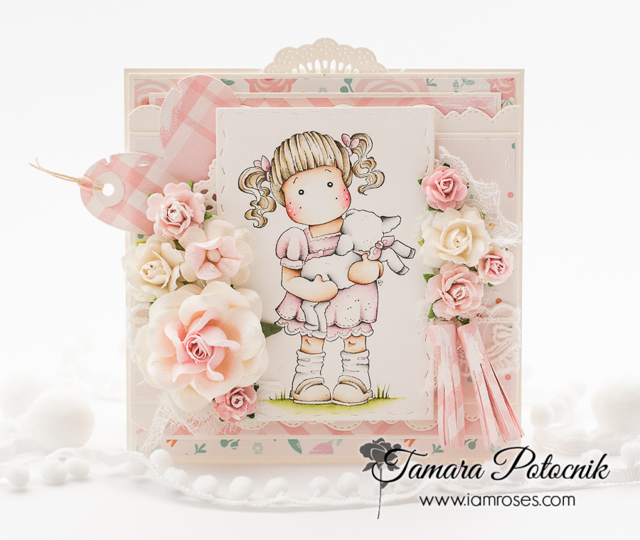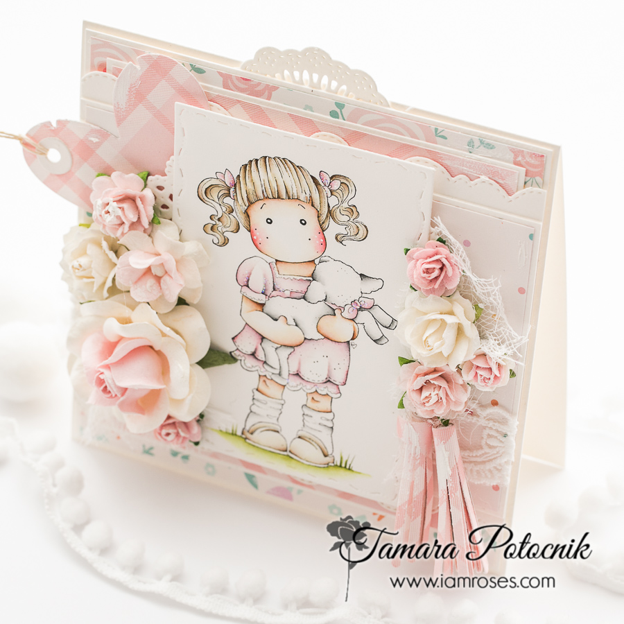 For this card I used one of the old Magnolia images called Tilda carrying a lamb from Hoppy Easter collection.