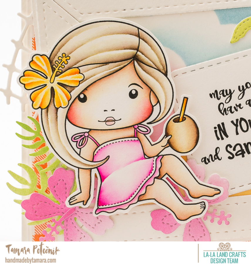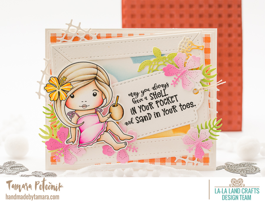 Today I’m sharing with you my last New Release card featuring Tropical Marci* Rubber Stamp. Image was coloured using Distress ink pads. I haven’t used any design papers on this card, just our awesome background stamps and dies.