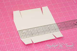 Take square 1 and make score lines at 1.5″, 5″ and 6.5″. Flip it and do it from the other side too.