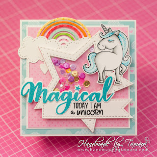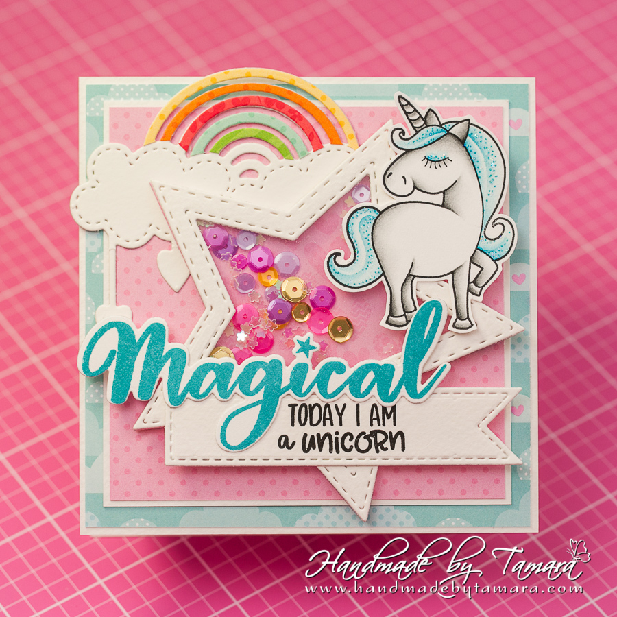 Colour your chosen image and stamp word Magical. I used sentiment from the Be Unique stamp set.