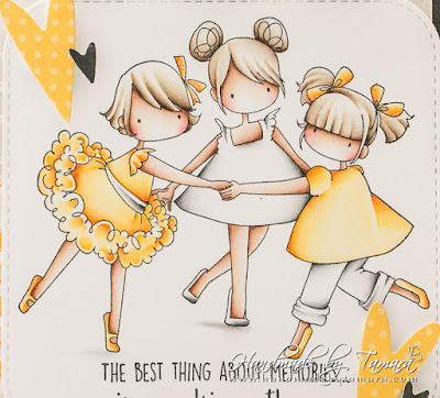 Tamara here with you. For this Sunday I created a sunny yellow card featuring Tiny Townies Playing ring around the Rosie stamp. We have a similar game here in Slovenia that kids love to play.