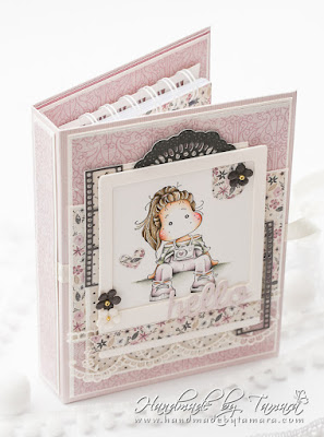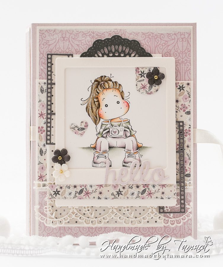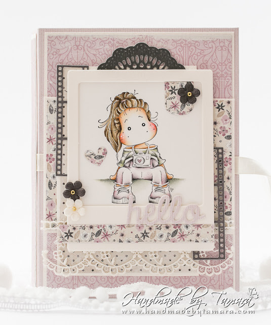 Today I’m sharing with you a notebook I made before our family holiday. I used Sitting Sightseeing Tilda and coloured her using Distress ink pads.