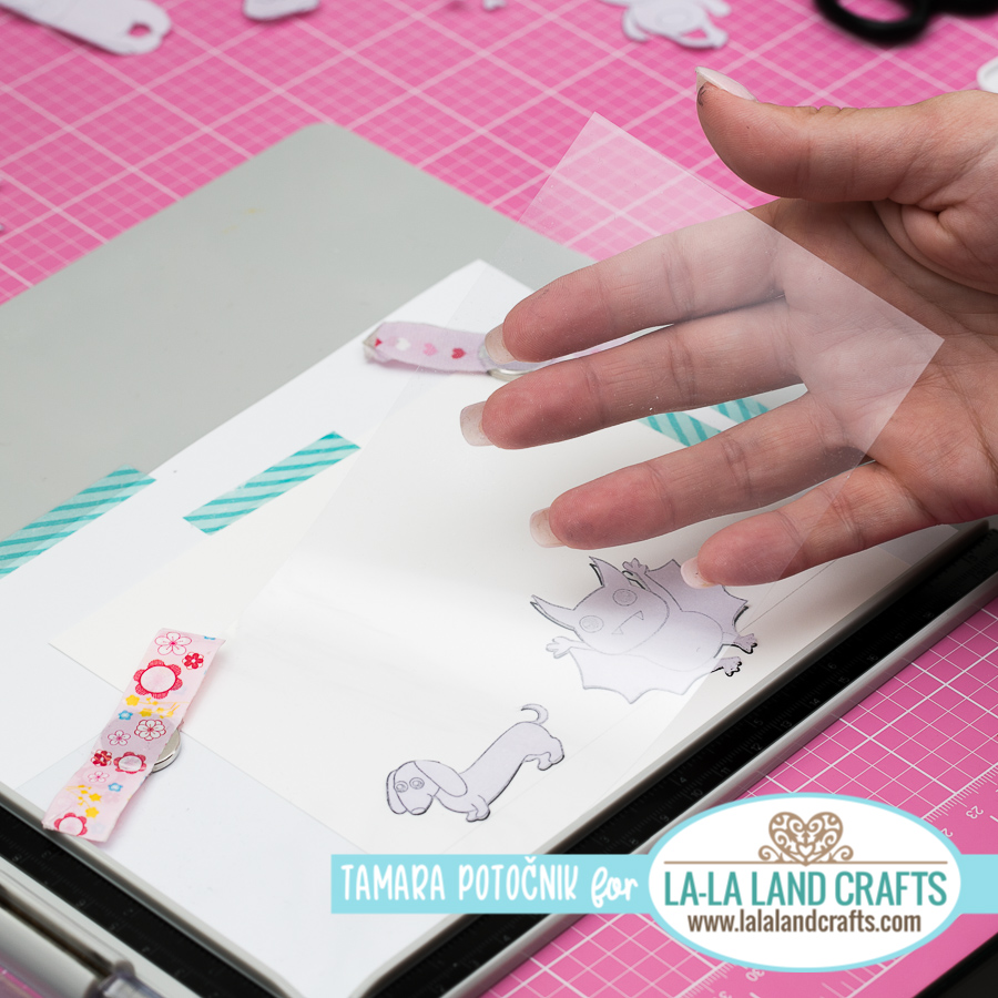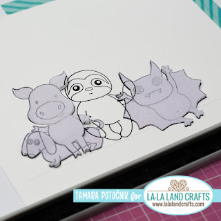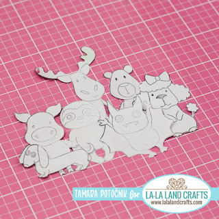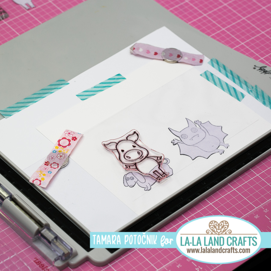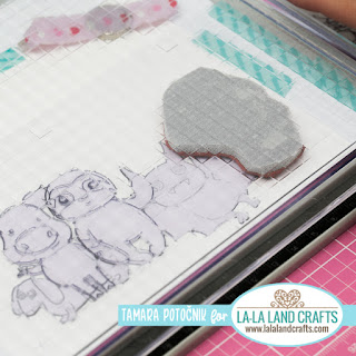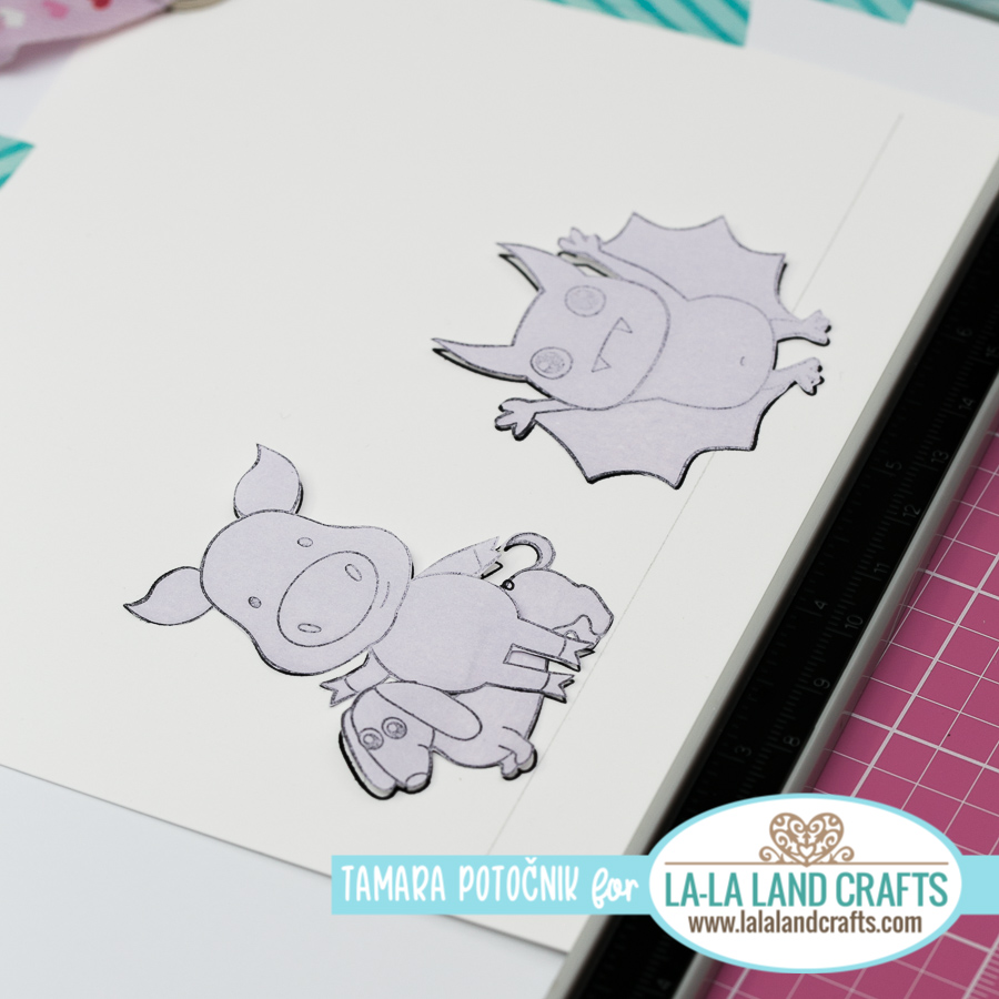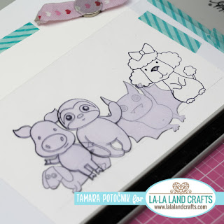 Tamara here with you. Have you seen the amazing 5th anniversary CLUB kit from la-la land crafts??? It’s amazing and there’s one big stamp of la-la land animals. I decided to show you how to create a similar scene with masking images. It’s super easy, you’ll see.