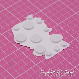 Make die cuts. Cut 4 of the biggest tags from the Layering tag set, 2 from white cardstock and 2 from design paper.