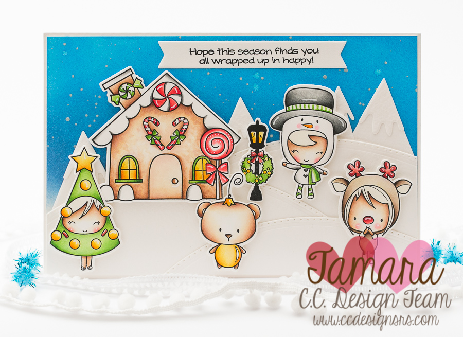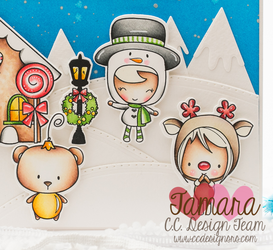 All of these little characters are just adorable! Sweet card with beautiful coloring! Love the winter scene you created!