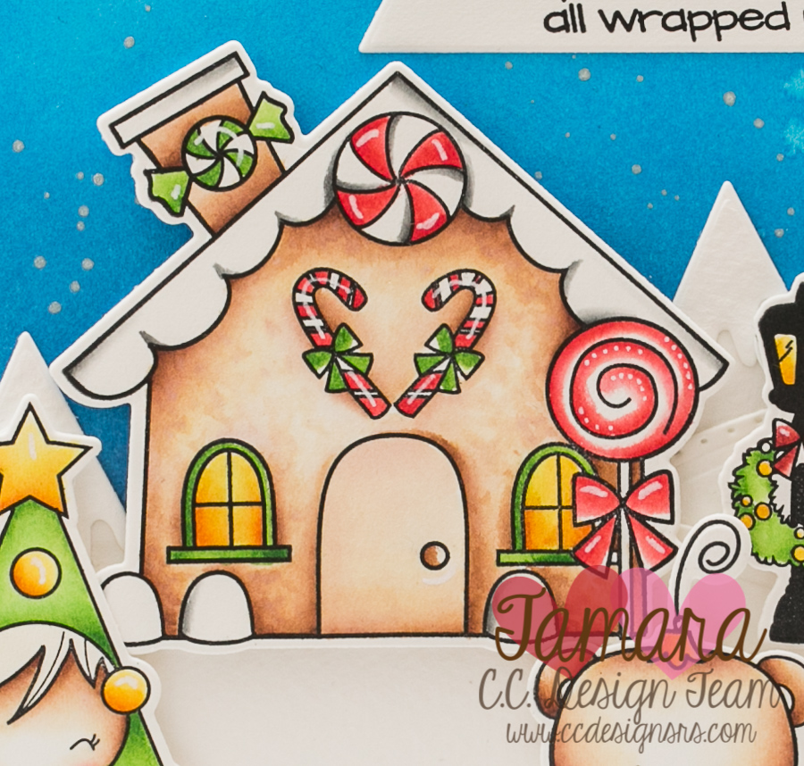 Your gingerbread house is totally cute and I love the colors you used. But I especially love all those cuties! Sweet card’n