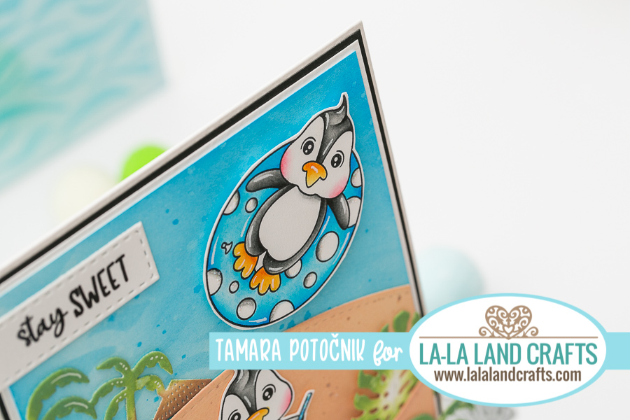 This week’s theme at la-la land crafts is to Use New Release. I created a fun Summer themed card. I created the background papers myself using Distress oxides and la-la land crafts stencils.