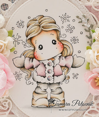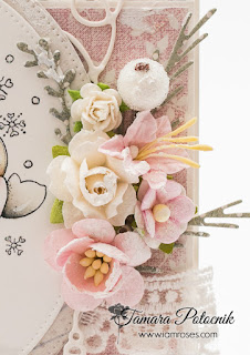 Beautiful coloring and details! Love the sweet image and all the pretty embellishments! The flowers are gorgeous!