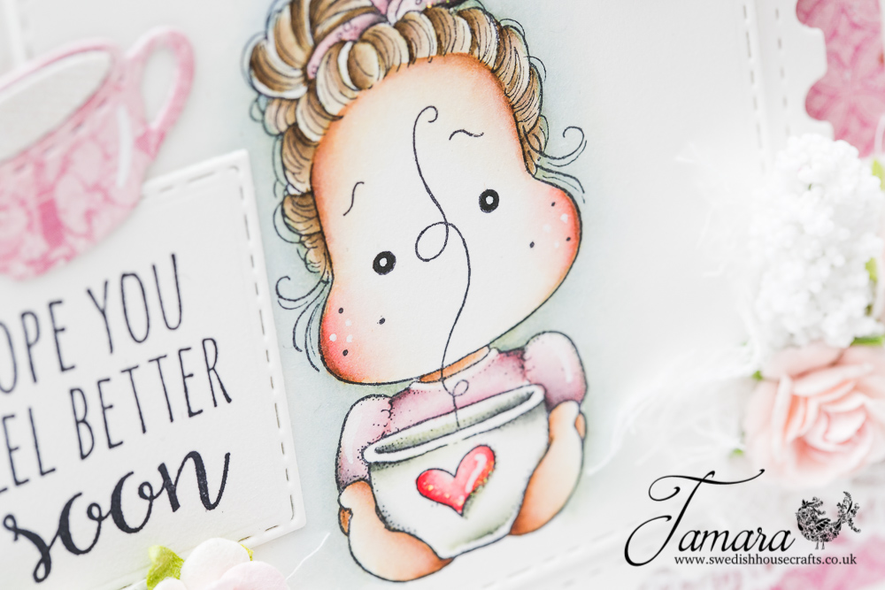 Today’s card features Magnolia’s Best Tea-Cher Ever Art Stamp Kit. I decided to make a Get well card instead, since this image can be used for both.